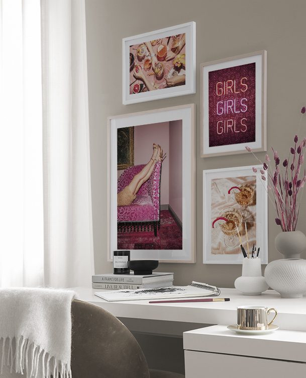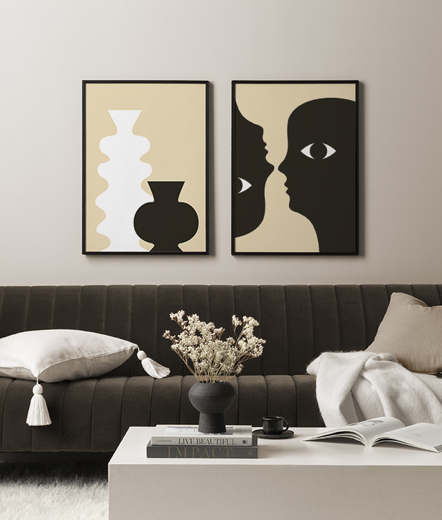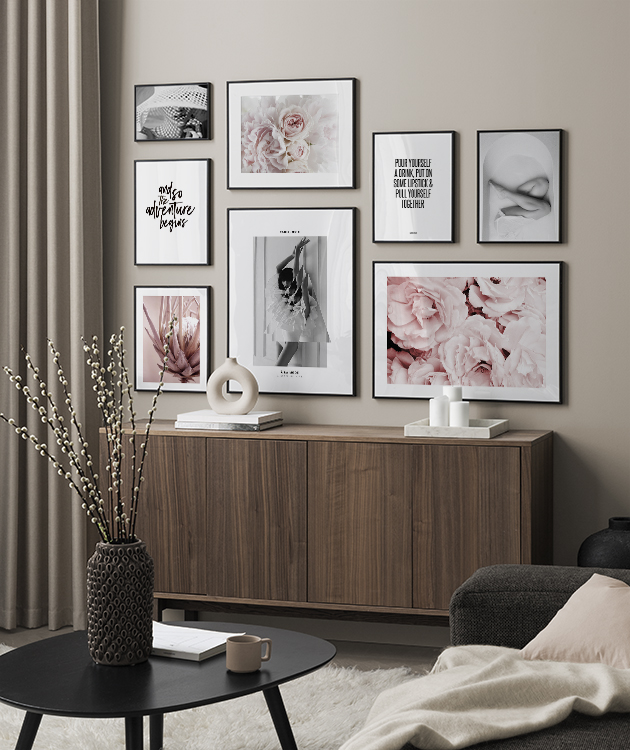 ¡En nuestra sección de inspiración puedes alternar entre distintas habitaciones y estilos y encontrar una decoración de pared que se ajuste precisamente a lo que busques! Encuentra la inspiración para aprender a combinar distintos pósters y crear una elegante decoración de pared en tu hogar.