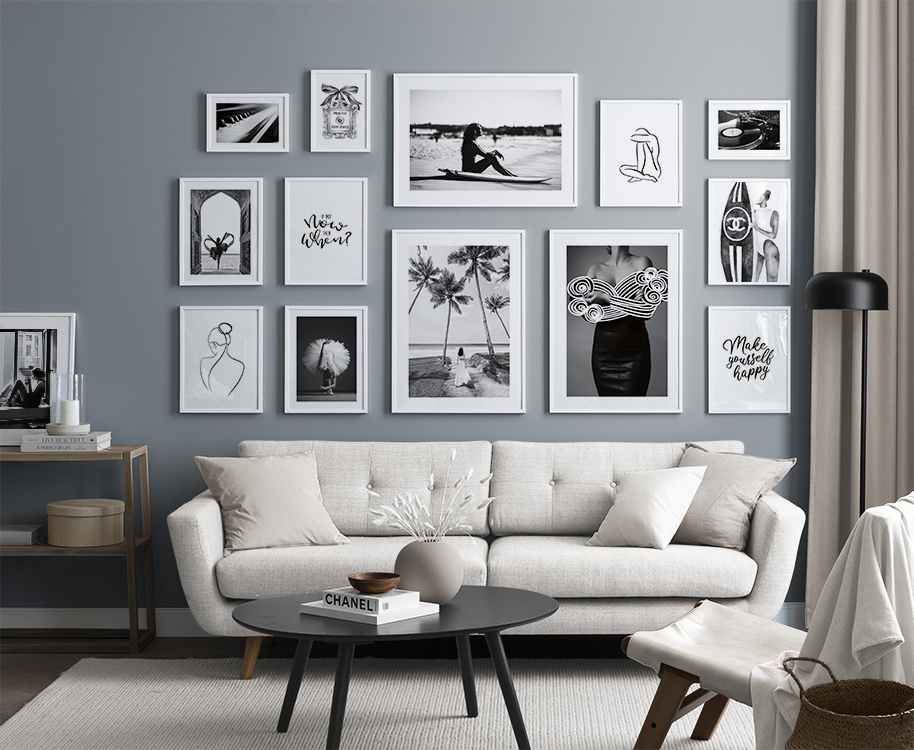 Actualizamos regularmente nuestra oferta con nuevas decoraciones de pared que siguen las tendencias de la temporada y las últimas tendencias de decoración. Puedes variar tu decoración en función de cómo te sientas en cada momento: para ello solo tienes que comprar nuevos motivos y combinar nuevas combinaciones de manera sencilla y asequible. Creamos decoraciones de pared personalizadas en función de las habitaciones y del estilo de decoración. Por ejemplo, puedes comprar un collage con cuadros para la cocina con bonitos motivos fotográficos si lo que te gusta es más un estilo de decoración más moderno, o una decoración de pared más estilosa para la sala de estar con ilustraciones minimalistas que quedan perfectas en una decoración escandinava.