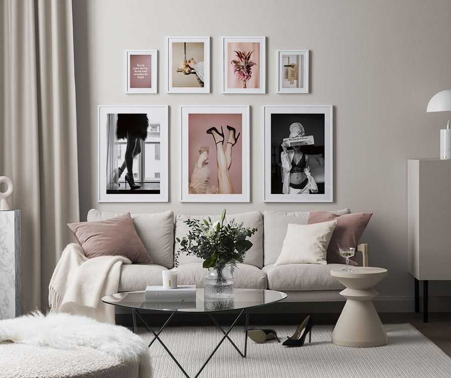 En cada decoración de pared puedes también adaptar los motivos y elegir el tamaño, el marco, el passepartout y otros accesorios para pósters: así crearás una combinación totalmente única. Las opciones y posibilidades son infinitas: el único límite es el que ponga tu imaginación. ¡Encuentra pura inspiración para decorar y llévate a casa una decoración de pared que refleje exactamente cómo eres TÚ!