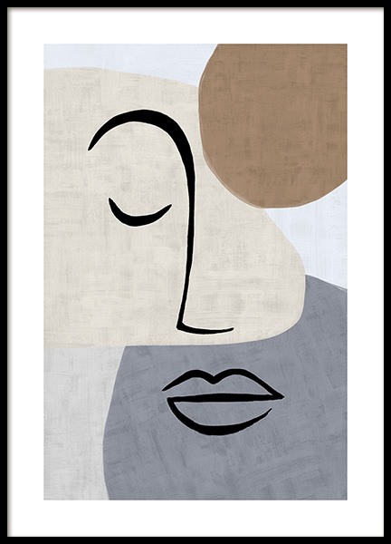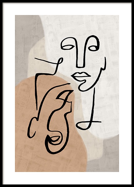 Handpicked design Esbozo abstracto de trazos que forman rostros y un cuerpo, con figuras en beis fondo de tono estructurado. Encuentra alegría y calma en el arte de tu hogar. ¡Cuelga arte en la pared!