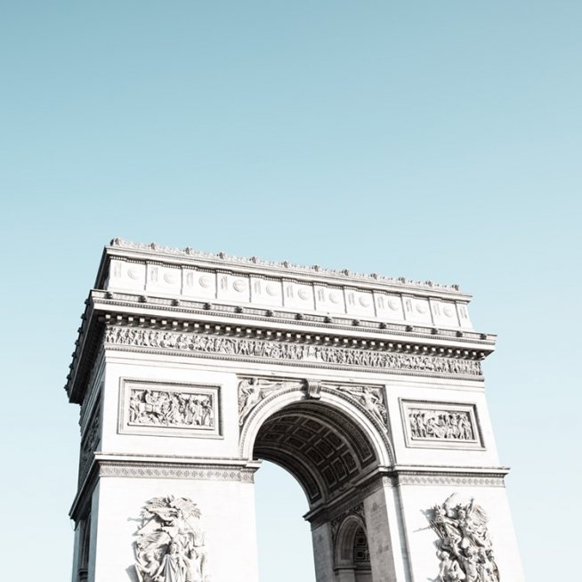 Handpicked design Bonito cuadro fotográfico del Arco del Triunfo de París sacado por nuestro equipo creativo. Este póster que tiene el Arco del Triunfo como motivo muestra el emblemático arco con bonitos detalles, junto con el colorido cielo azul de fondo.