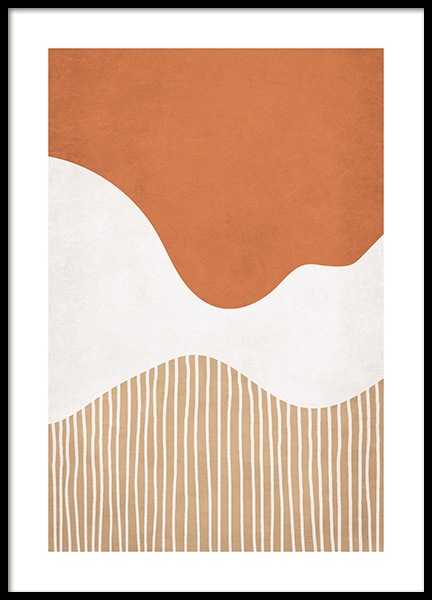 Handpicked design Ilustración de diseño gráfico con fondo beis y figuras marrones y anaranjadas que forman un cuerpo abstracto. Si tu interiorismo se caracteriza por tener influencias modernas, el arte de estilo gráfico es ideal para este tipo de decoración. Empareja este motivo con la imagen Body Shapes No2. ¡El estilismo quedará genial en tu pared!