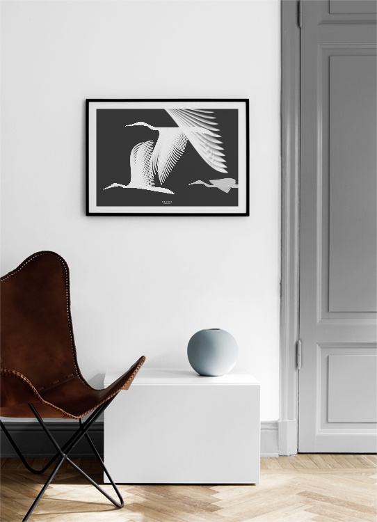 Cranes In Moiré Poster en el grupo  Pósters / Animales con Desenio AB (3223)