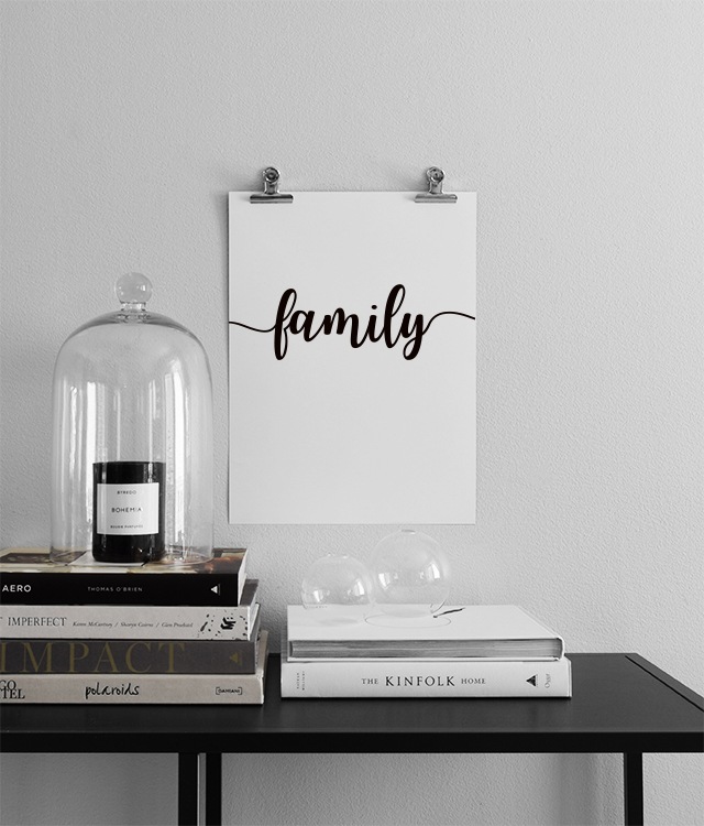 Handpicked design Los cuadros de texto están de rabiosa actualidad y este póster con la palabra “Family” escrito en negro sobre un fondo blanco queda perfecto. Un póster sencillo de combinar junto con otros y que nos recuerda constantemente a nuestros más allegados. Encontrarás todos nuestros pósters con citas en la categoría “Cuadros con texto”.