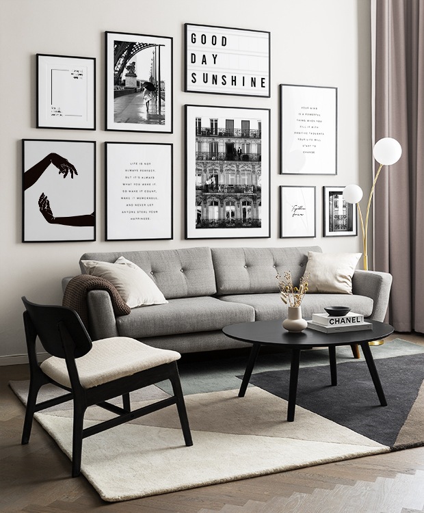 Si lo que deseas es conseguir un aspecto clásico y atemporal en la decoración del salón, apuesta por una pared de cuadros con fotos en blanco y negro. Decántate por fotografías artísticas en colores alegres si apuntas a componer una pared de cuadros más vibrante. ¡En esta galería de paredes de cuadros dedicada a las fotografías artísticas encontrarás algo para todos los gustos y estilos!