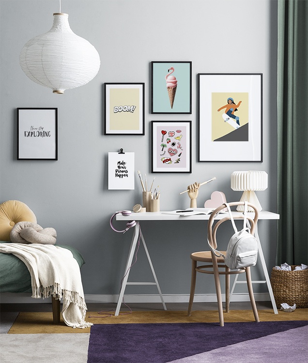 Añadir ilustraciones a tus estancias es la manera ideal de crear una atmósfera acogedora y darle al ambiente un aspecto de autenticidad. Decántate por una composición de pared de cuadros que tenga ilustraciones; será una elección infalible.