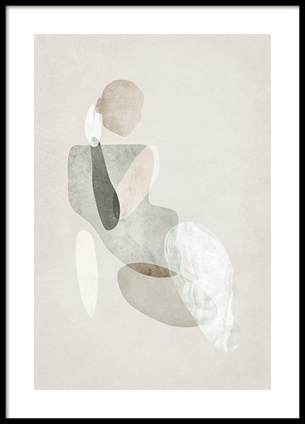 Desde 9,10 €Acuarela con figuras abstractas en verde y beis que forman un cuerpo, sobre un fondo beis. Si tienes una pared con poco espacio que quieras decorar, el interiorismo no fallará nunca si cuelgas dos láminas del mismo estilo. Empareja este motivo con el cuadro Together with Graphic Body No1. ¡Y ya tienes la dupla perfecta!