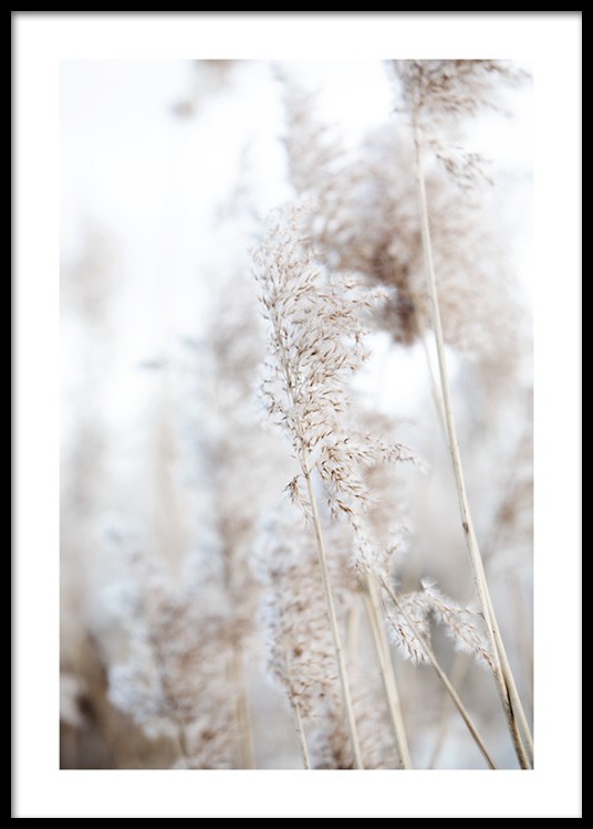 Handpicked design Primer plano de juncos color beis en un campo con un cielo claro de fondo. Los diseños de naturaleza en tonalidades suaves y neutras tienen la capacidad de añadir un toque de calma en el ambiente. Este diseño se empareja muy bien con el cuadro In the Reeds No2.