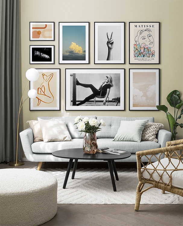 Encuentra inspiración y consejos para decorar y descubre cómo puedes llenar las enormes paredes de la sala de estar con cuadros y decoraciones murales. La sala de estar es, por lo general, la habitación más grande de casa y las paredes son perfectas para crear una decoración de pared que deje a todo el mundo con la boca abierta. Utiliza pósters de distintos tamaños y formatos para crear una decoración de pared que respire vida por los cuatro costados y refleje tu personalidad.