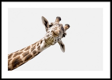 Tavla med djurmotiv. Poster med giraff på grå bakgrund.