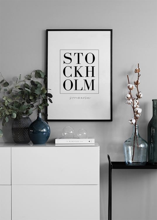 Handpicked design Elegante póster con el texto «Stockholm» (Estocolmo), para aquellos a los que les guste la capital sueca. Cuadro que tiene una configuración estilosa y que queda súper elegante en la pared. Disponemos de un sinfín de elegantes cuadros y pósters con ciudades y mapas. Entre otros, un bonito mapa de Estocolmo. Crea una decoración de pared junto con varias láminas y print.
