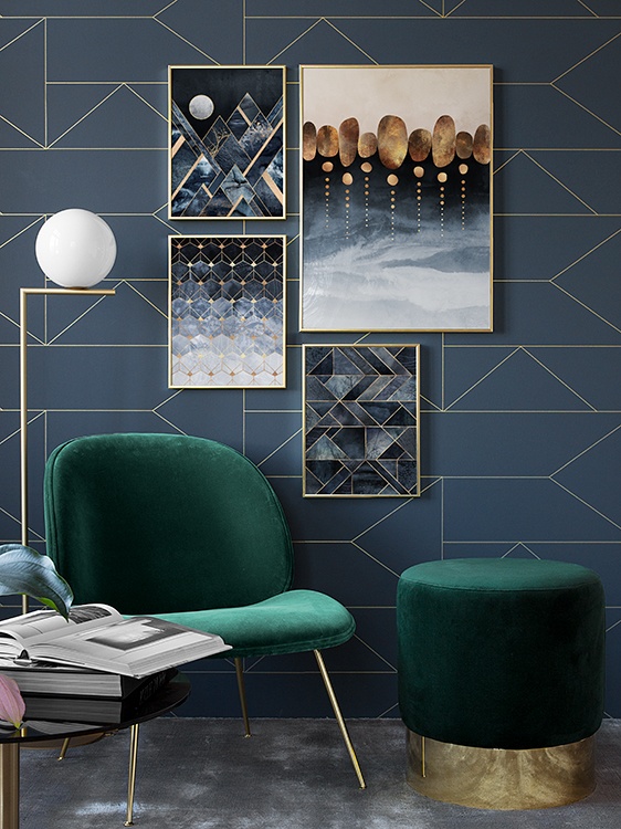 Handpicked design El motivo está creado por Elisabeth Fredriksson. Póster elegante que, con su motivo gráfico en tonos azulados y detalles dorados, quedará elegante para decorar una pared de tu hogar. Imprime un toque de vida a tus paredes al mismo tiempo que haces que tu hogar sea más personal colgando pósters modernos que te gustan y te inspiran. ¿No estás del todo seguro de cómo combinar tus cuadros? En ese caso, echa un vistazo a nuestra categoría Inspiración, donde encontrarás consejos e ideas sobre cómo colocar tus pósters.