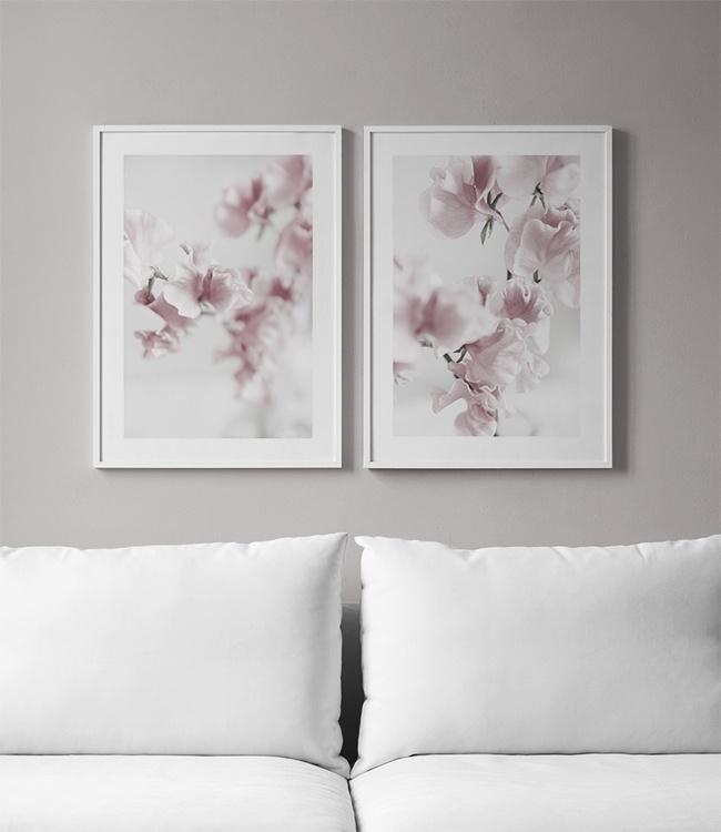 Handpicked design Bonito póster con una fotografía de flores de color rosa. Este cuadro fotográfico botánico queda perfecto para decorar, por ejemplo, la sala de estar. El motivo botánico de color rosa queda bien en todos los hogares y también se puede combinar con otros cuadros. El póster tiene un borde blanco que enmarca el motivo de manera muy bonita.