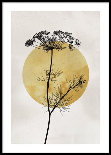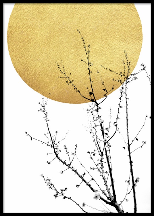 Handpicked design Ilustración de diseño gráfico con ramas oscuras, un sol amarillo y fondo blanco. Los pósters con ilustraciones y arte de estilo gráfico son los motivos ideales para conseguir un ambiente moderno y con toques decorativos actuales. En nuestra categoría Diseño Gráfico encontrarás más motivos que podrás combinar con esta imagen.