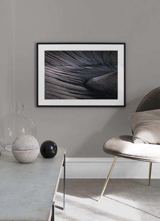 Handpicked design Fotografía de un cráter volcánico negro. Los pósters en tonos oscuros aportan profundidad y dimensión a la estancia. Cuelga este motivo junto a otras fotografías de arte que encontrarás en la categoría Naturaleza.