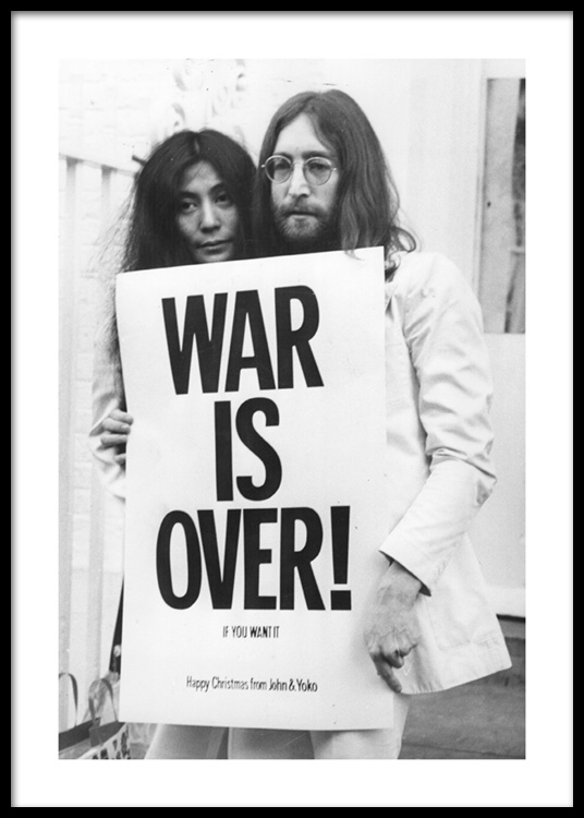 Desde 11,52 €Fotografía en blanco y negro de los íconos John Lennon y Yoko Ono. Sostienen un cartel que dice War is Over. Se trata de una de las imágenes más clásicas que existen. Fue tomada durante la campaña de paz realizada por John Lennon y Yoko Ono en 1969 y que llevaba el siguiente mensaje: 'War is Over! If you want it'.