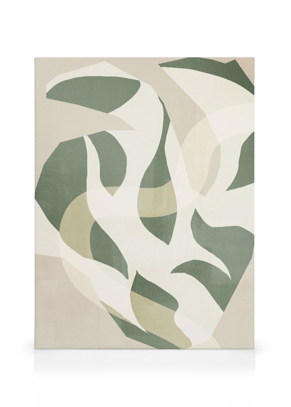 Un hermoso lienzo que presenta formas abstractas de hojas y pétalos en tonos de verde, beige y blanco sobre un fondo texturizado. La pieza perfecta de arte de pared para tu sala de estar o pared de galería.