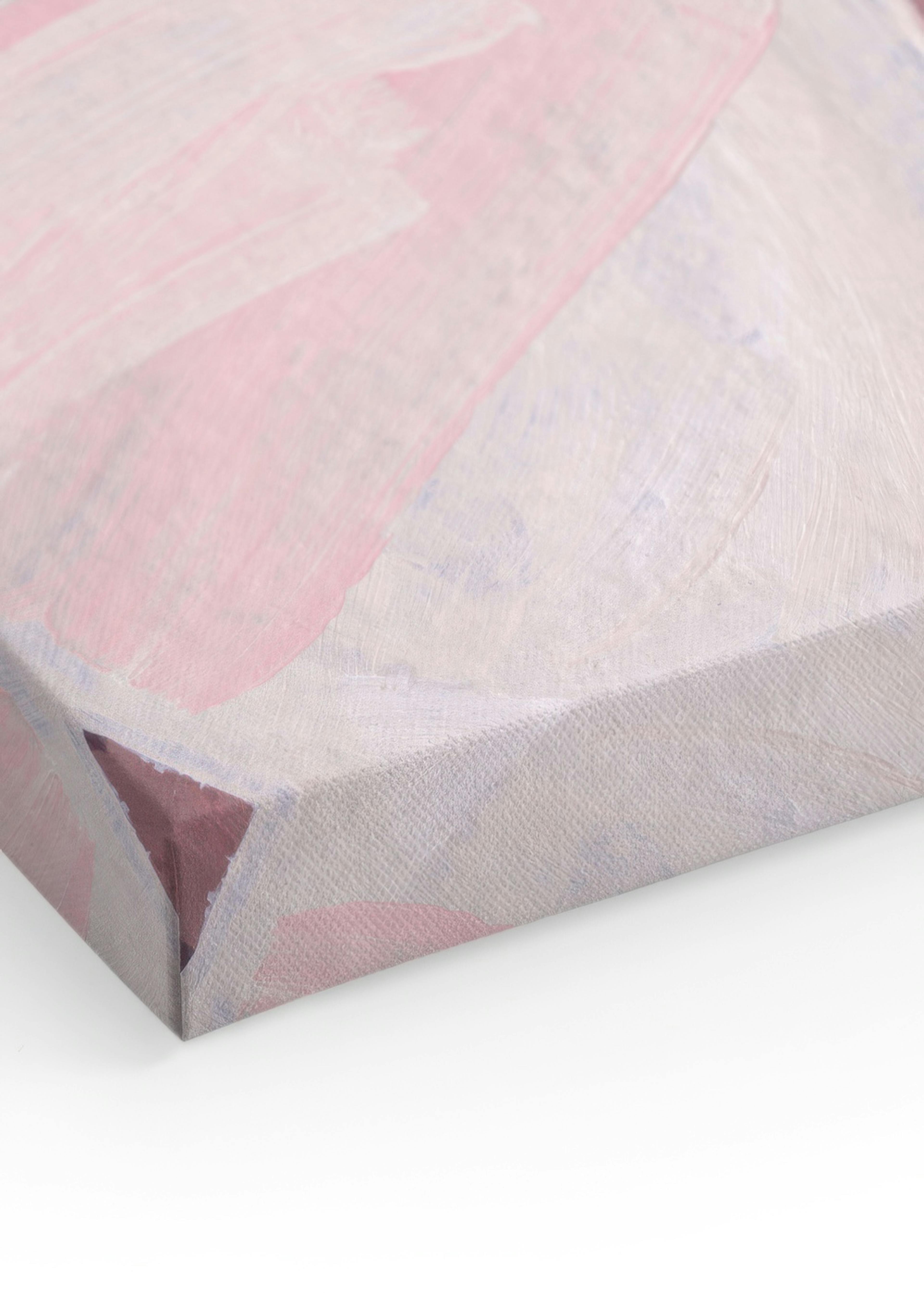 Lienzo abstracto con pinceladas en rosa, blanco y marrón que se asemejan a semillas o pétalos sobre un fondo rosa claro. El arte perfecto para tu galería de cuadros o sala de estar.