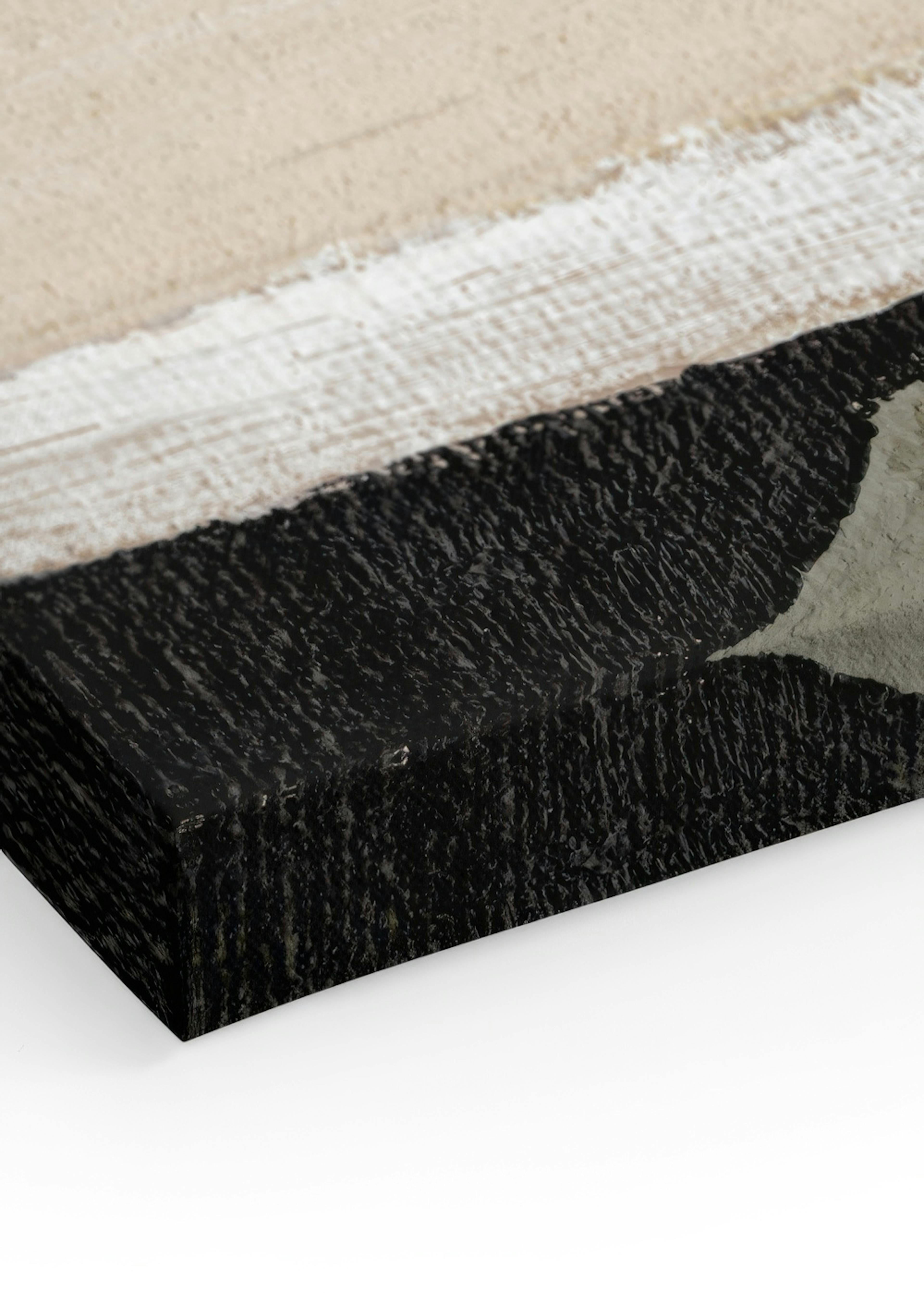 Lienzo abstracto con bloques y líneas en beige, verde, marrón, blanco y negro. Una pieza destacada perfecta para cualquier galería en casa.