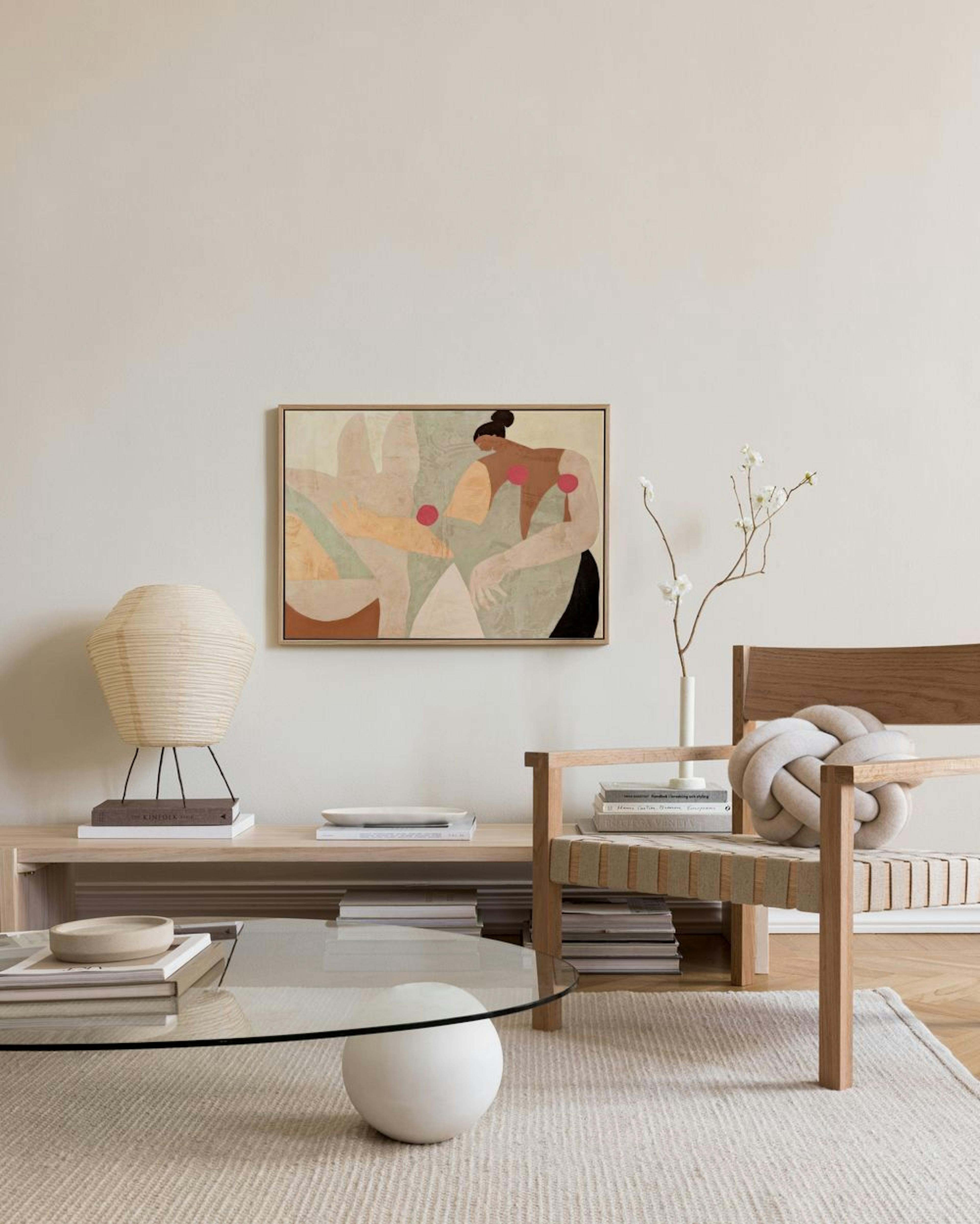 30,45 €Un lienzo llamativo con pinceladas abstractas que representan dos figuras cautivadoras en tonos naturales suaves. Una pieza distintiva de arte mural para realzar cualquier espacio.