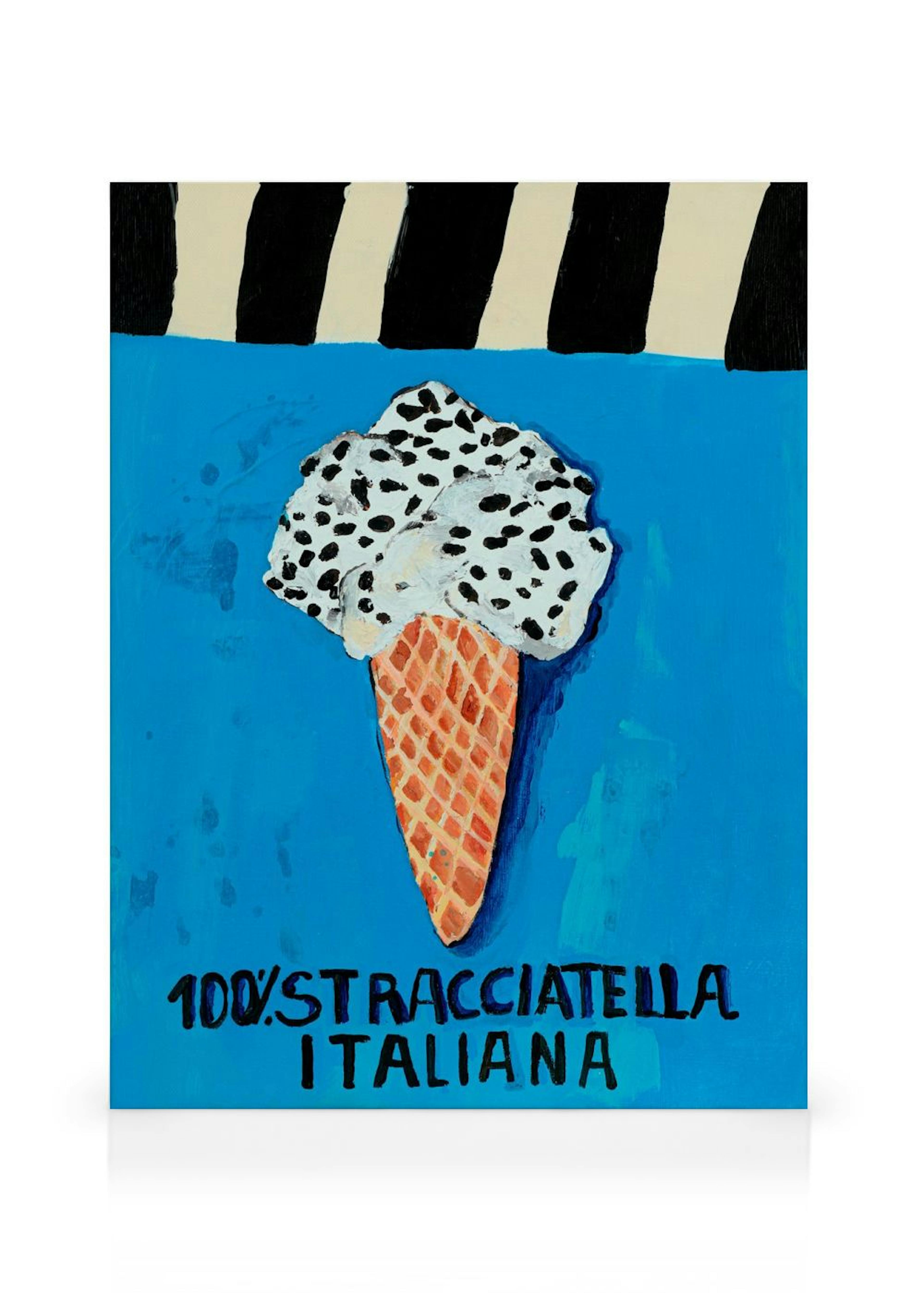 Desde 24,95 €Lienzo que muestra un cono de helado italiano stracciatella sobre un fondo azul vivo con dramáticas líneas negras. Perfecto para una cocina o una pared de galería.
