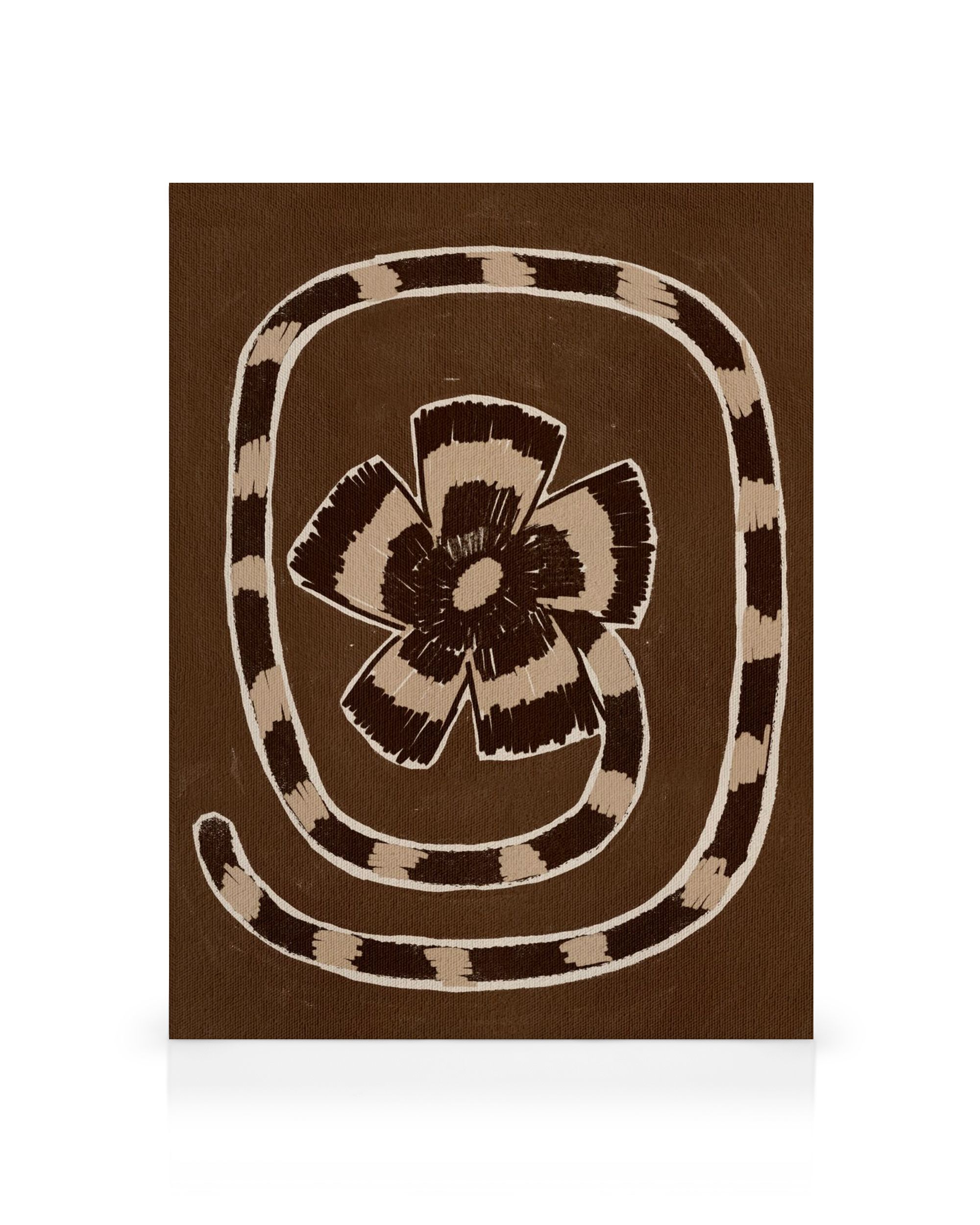 Desde 19,96 €Un lienzo que muestra una serpiente de rayas beige y marrón enrollada en forma de espiral. Una flor florece en el centro de este diseño simple pero impactante.
