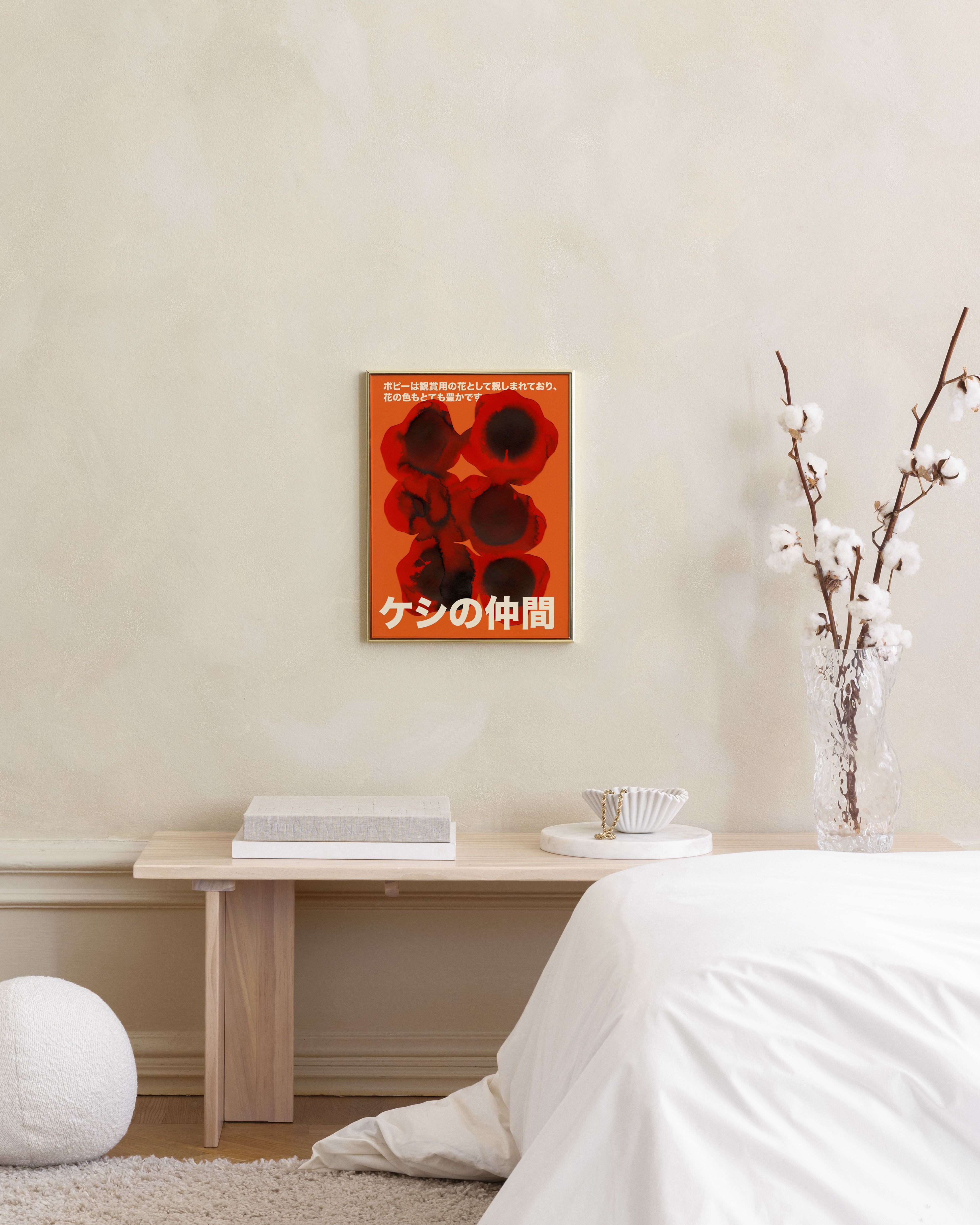 Desde 24,95 €Póster abstracto con flores rojas y naranjas de bordes suaves sobre un fondo naranja brillante. Póster perfecto para añadir colores vibrantes a tu hogar.